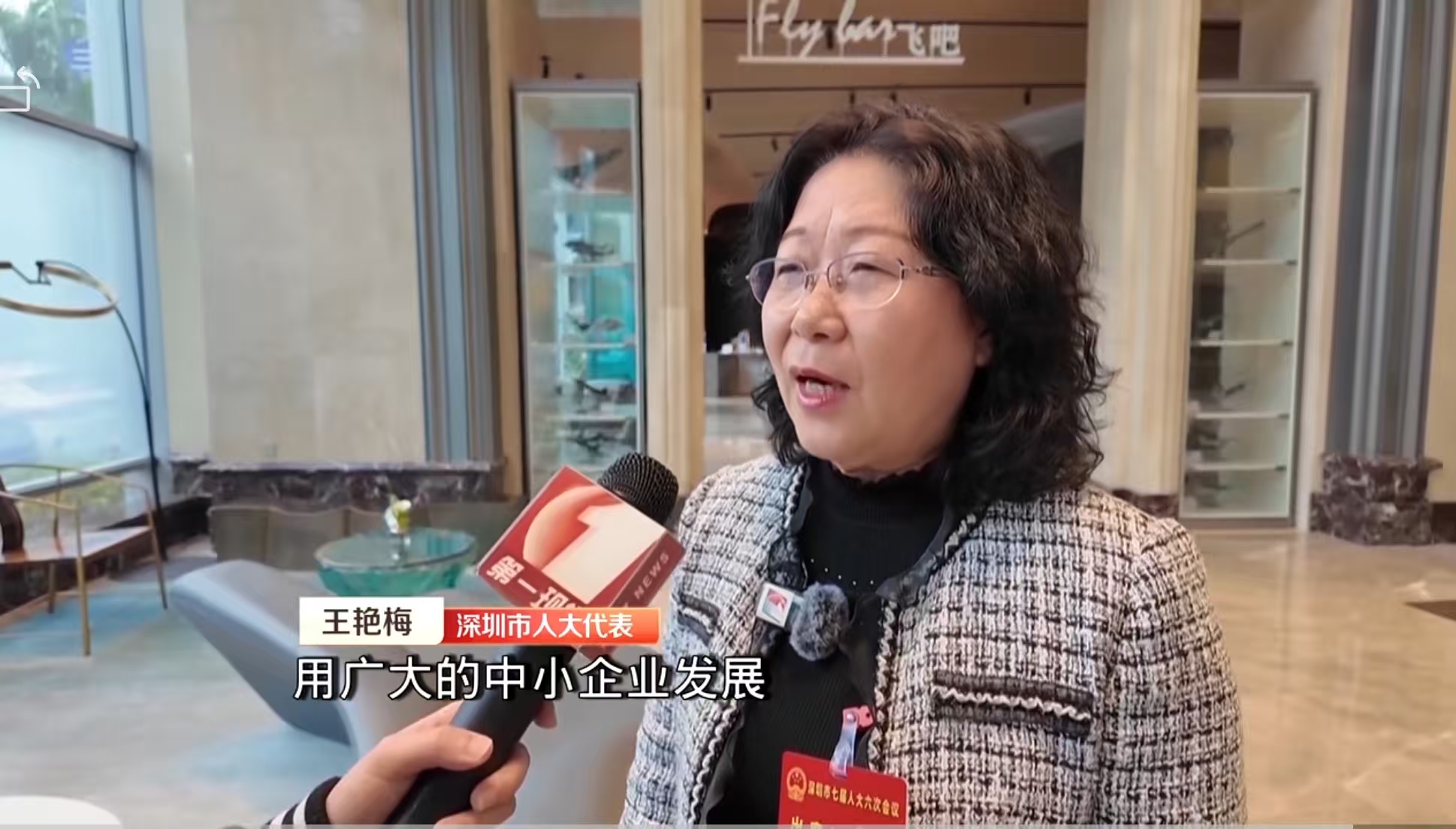 王艳梅代表接受第一现场采访时表示:用广大中小企业的发展来固化人才,让金融辐射到中小企业,深圳高质量发展就有后劲了。
