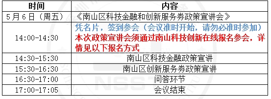 【重要通知】关于召开南山区科技金融、创新服务劵和科技服务活动政策宣讲会的通知