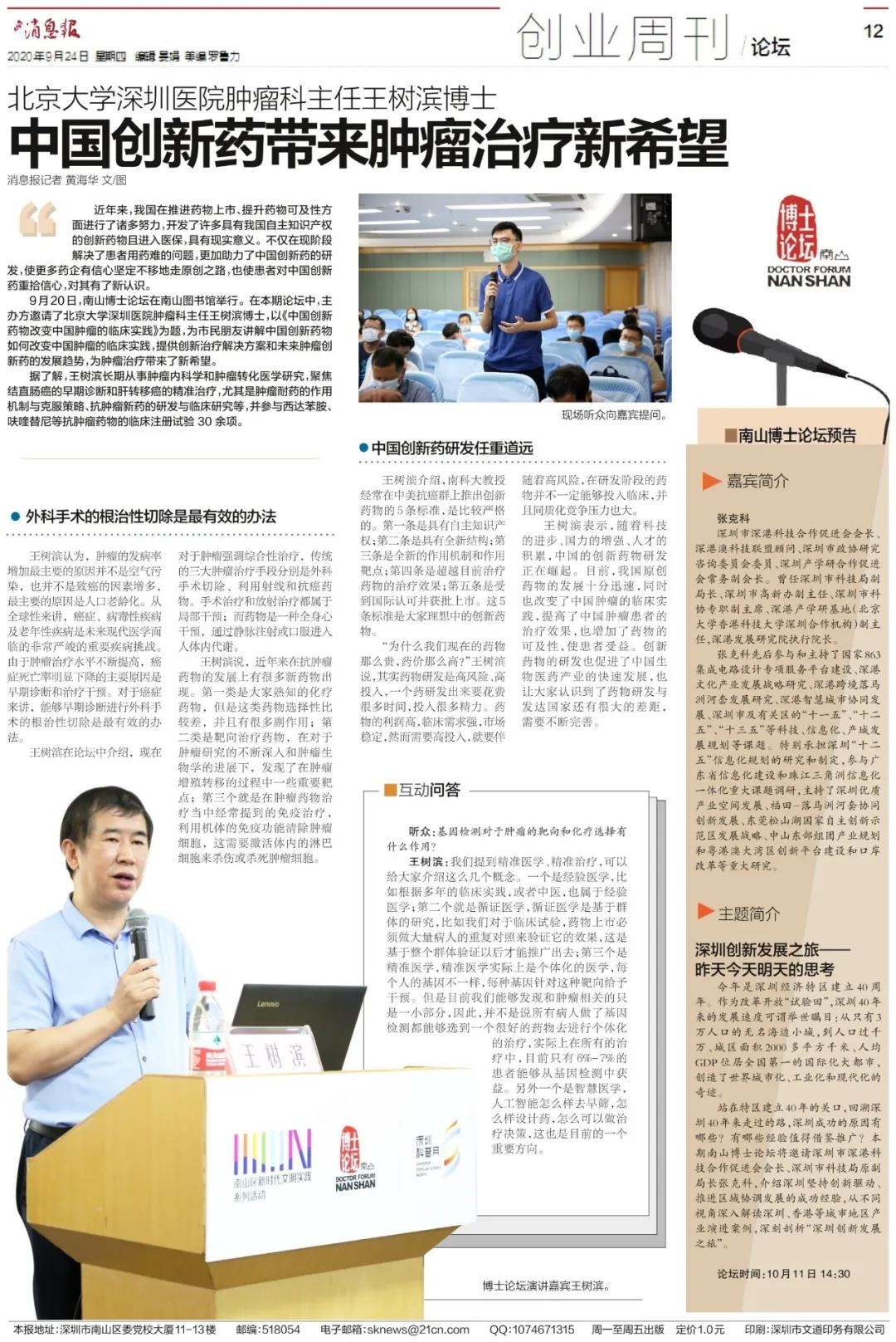 精彩回顾 | 2020年南山博士论坛441期:王树斌《中国创新药带来肿瘤治疗新希望》