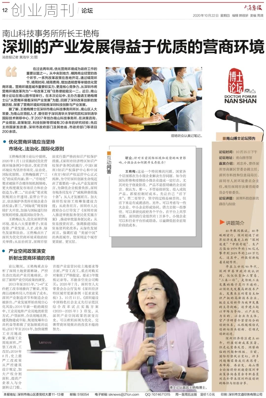 精彩回顾 | 2020年南山博士论坛443期:王艳梅《从营商环境看深圳的产业发展》
