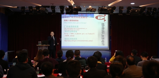 11月11日下午,“企业知识产权管理规范”专题讲座在南山数字文化产业基地一楼多功能厅举办。产学研联盟总秘书处、深圳市南山科技事务所特邀深圳市创富知识产权董事长——曾敬老师带来深入解读,帮助南山区企业了解相关政策和企业知识产权管理相关规范,南山区科技创新局刘石明副局长到会并致辞,他强调,各企业要充分认识到知识产权的重要性,认识到在市场竞争环境下加强知识产权管理工作对于企业发展的意义,积极贯彻企业知识产权管理规范,提高知识产权管理水平。